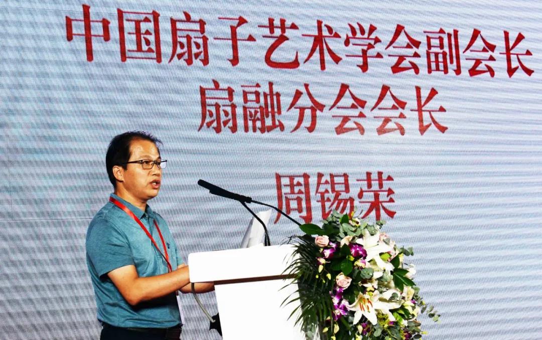 中國(guó)扇子藝術學(xué)會(huì)副會(huì)長(chá影草ng)、扇融分會(huì)會(huì)化紙長(cháng)周錫榮在推介會(huì)上講照森話。(中紅網金梅攝)